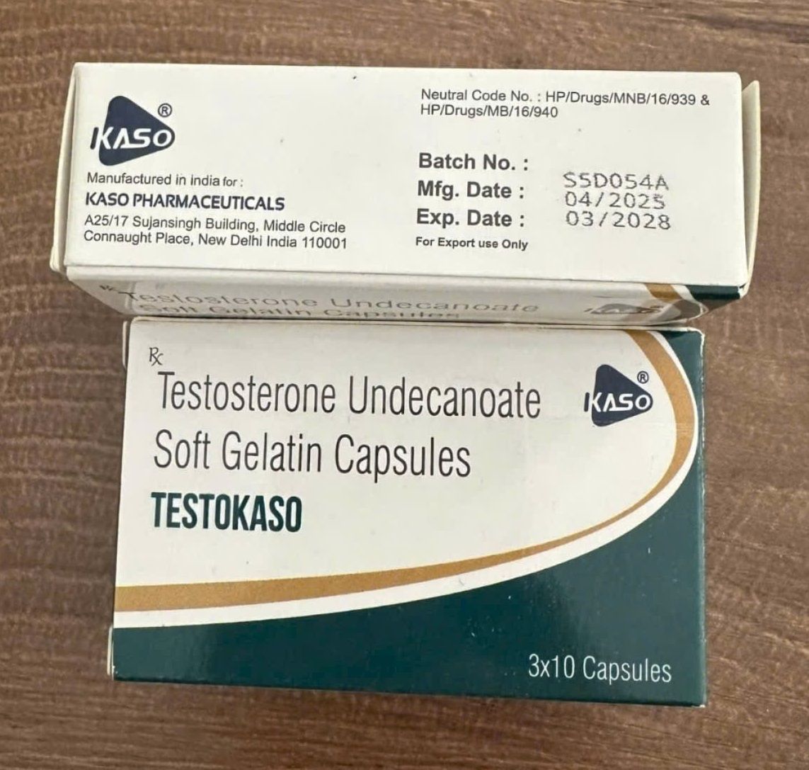 Thuốc Testokaso 40mg là thuốc chứa hoạt chất Testosterone undecanoate, được dùng như liệu pháp thay thế hormone testosterone ở nam giới khi cơ thể thiếu hụt testosterone tự nhiên, khi tuyến sinh dục không sản xuất đủ hormone này. Testokaso thường bào chế dưới dạng viên nang mềm uống, mỗi viên chứa 40 mg Testosterone undecanoate.